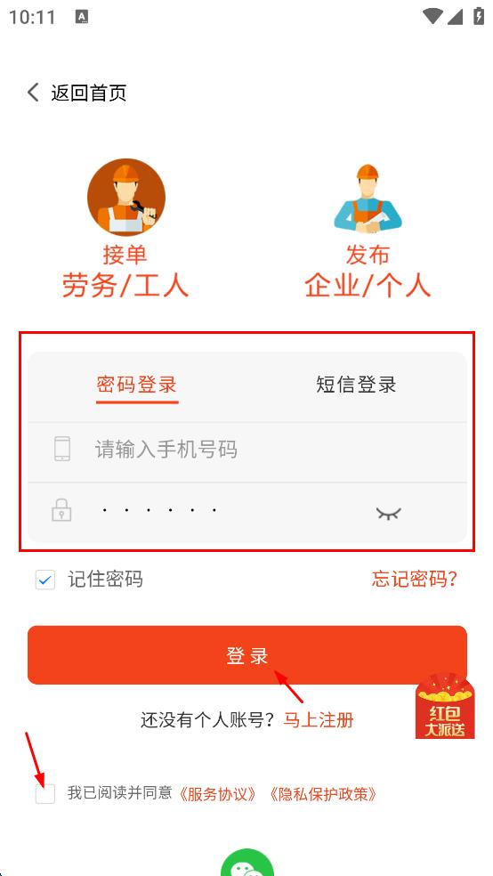 4、在登錄選擇界面,勾選已閱讀并同意相關(guān)協(xié)議,輸入手機號、密碼,點擊登錄即可。
