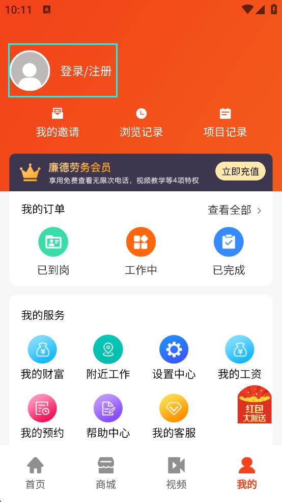 3、在個人頁面,點擊登錄/注冊,進入登錄選擇界面。