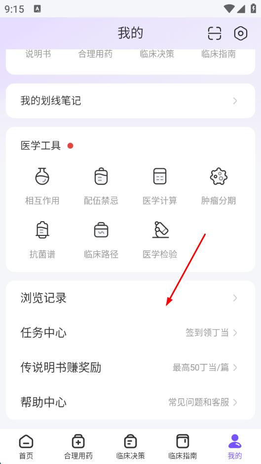 2、在“我的”頁面,找到并點(diǎn)擊瀏覽記錄選項。