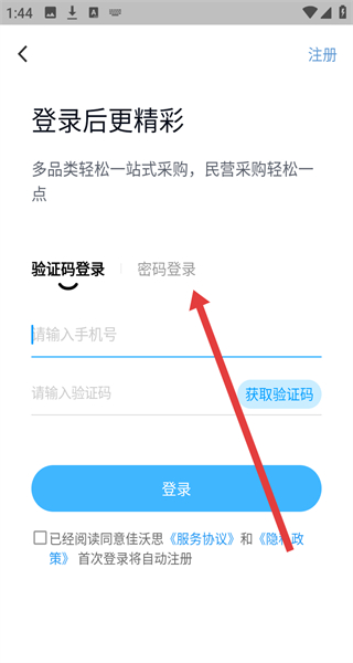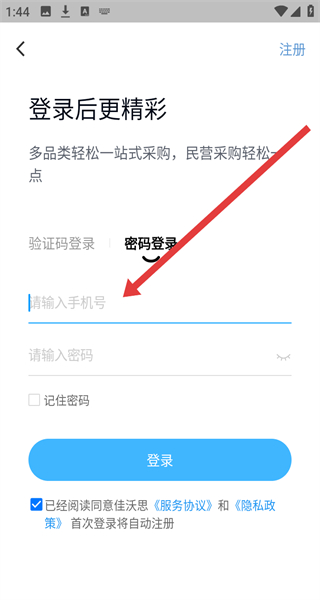 4、密碼登錄界面輸入手機(jī)號(hào)和密碼,勾選協(xié)議后完成賬號(hào)登錄操作。