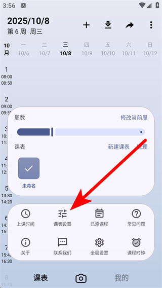 2、在彈出的選項(xiàng)中,點(diǎn)擊課表設(shè)置的按鈕,進(jìn)入課表設(shè)置頁(yè)面。