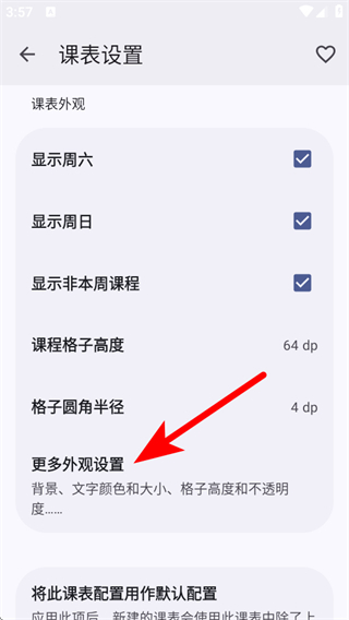 3、在課表設(shè)置頁(yè)面,點(diǎn)擊更多外觀設(shè)置,進(jìn)入課表外觀的頁(yè)面。