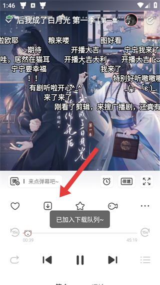 2、在音頻播放的界面,點(diǎn)擊下載的圖標(biāo),會(huì)彈出已加入下載隊(duì)列的提示,音頻開(kāi)始下載。