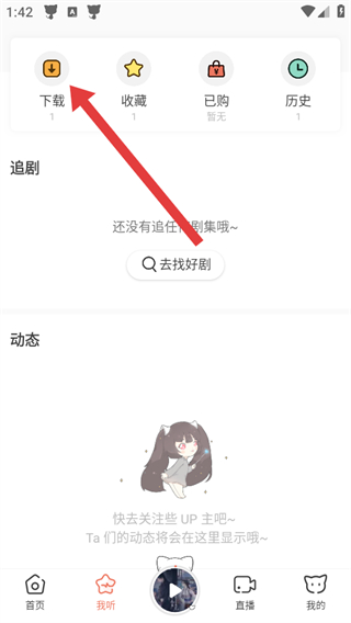 3、下載完成后,點(diǎn)擊底部導(dǎo)航欄的我聽(tīng),再點(diǎn)擊下載,即可查看已下載的音頻。