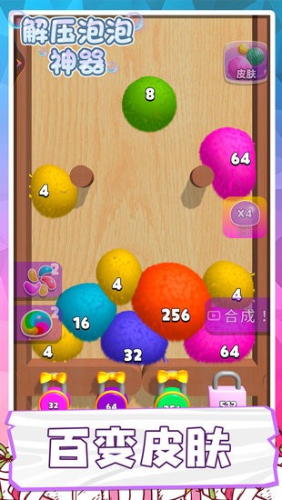 解壓泡泡神器有著趣味無比的合成玩法,游戲中有各種各樣的彩色球球,大家需要按照顏色來將它們合并升級,玩法操作十分簡單,隨著難度不斷升級,球球的顏色會越來越多,還有很多道具能夠使用,在緊要關頭可以幫你合成大泡泡。