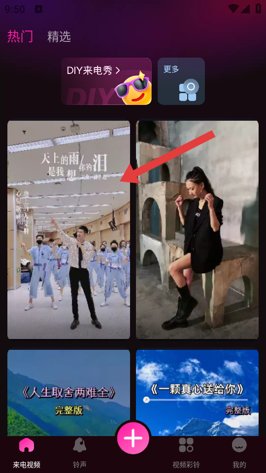 1、打開嗨來電APP,在來電視頻頁面的熱門分類下,點擊想要設(shè)置為來電秀的視頻。