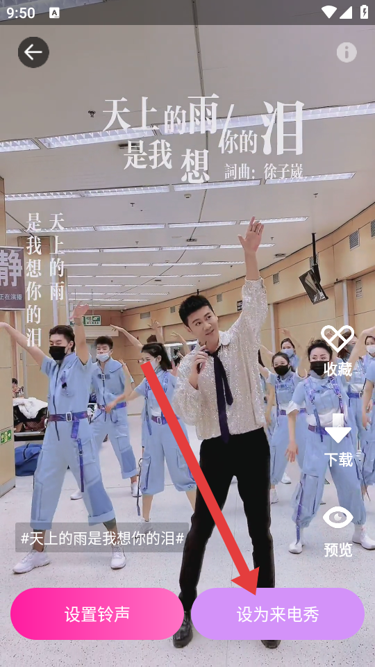 2、在視頻詳情的頁面,點擊底部右側(cè)的設(shè)為來電秀按鈕,進入權(quán)限設(shè)置的環(huán)節(jié)。