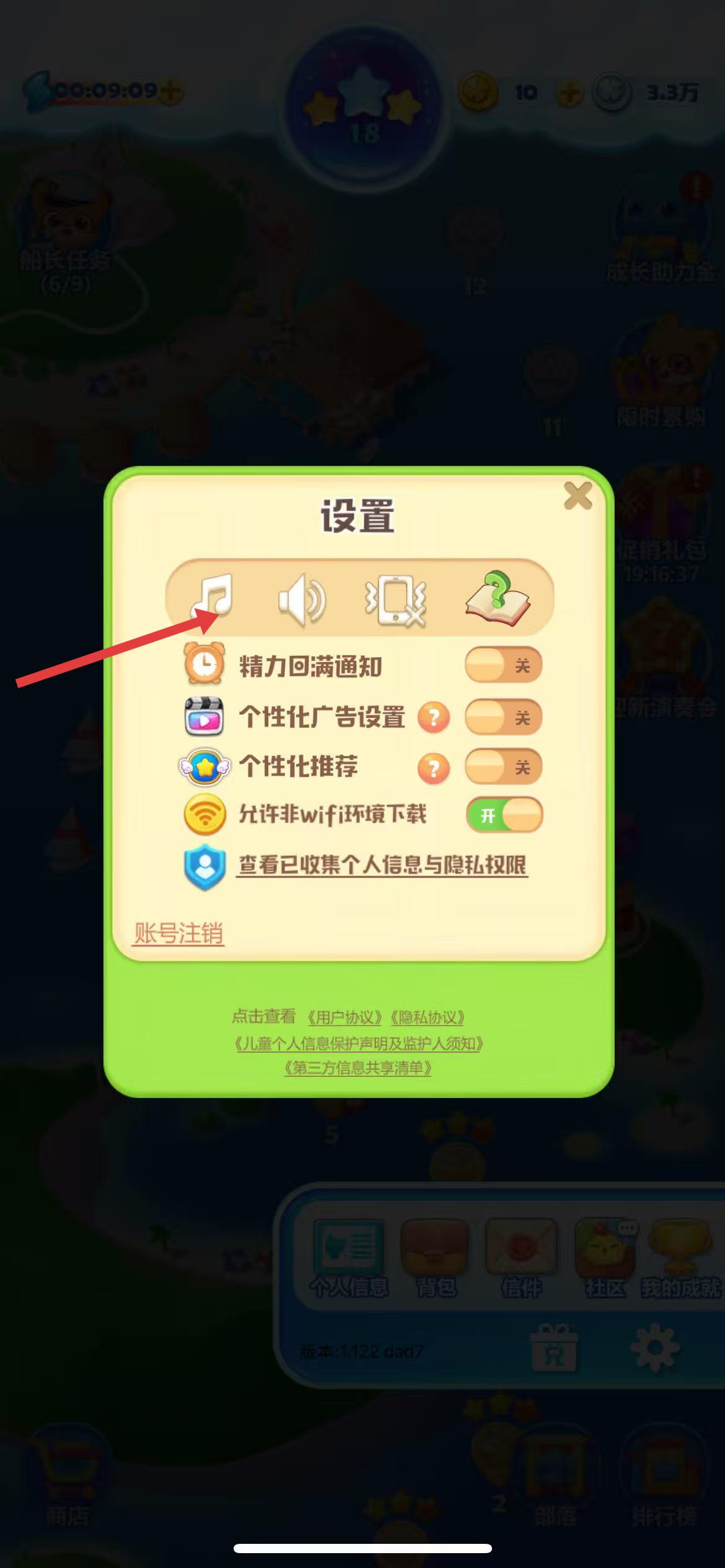 3、在窗口中找到帶有音符標(biāo)志的聲音設(shè)置按鈕,點(diǎn)擊即可關(guān)閉游戲聲音。