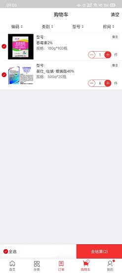 在這里,用戶可以通過(guò)編碼、類別、型號(hào)和加購(gòu)時(shí)間來(lái)對(duì)購(gòu)物車中的產(chǎn)品進(jìn)行排序;
