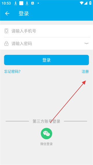 3、進入登錄頁面后,點擊右下角的注冊選項。