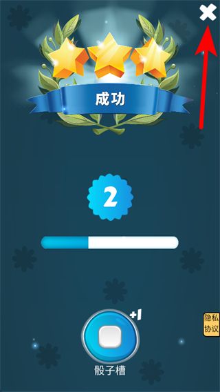 4、完成關(guān)卡挑戰(zhàn)后,點(diǎn)擊右上角關(guān)閉按鈕,關(guān)閉成功提示彈窗,繼續(xù)挑戰(zhàn)后續(xù)關(guān)卡,積累通關(guān)次數(shù)和獎(jiǎng)勵(lì)。