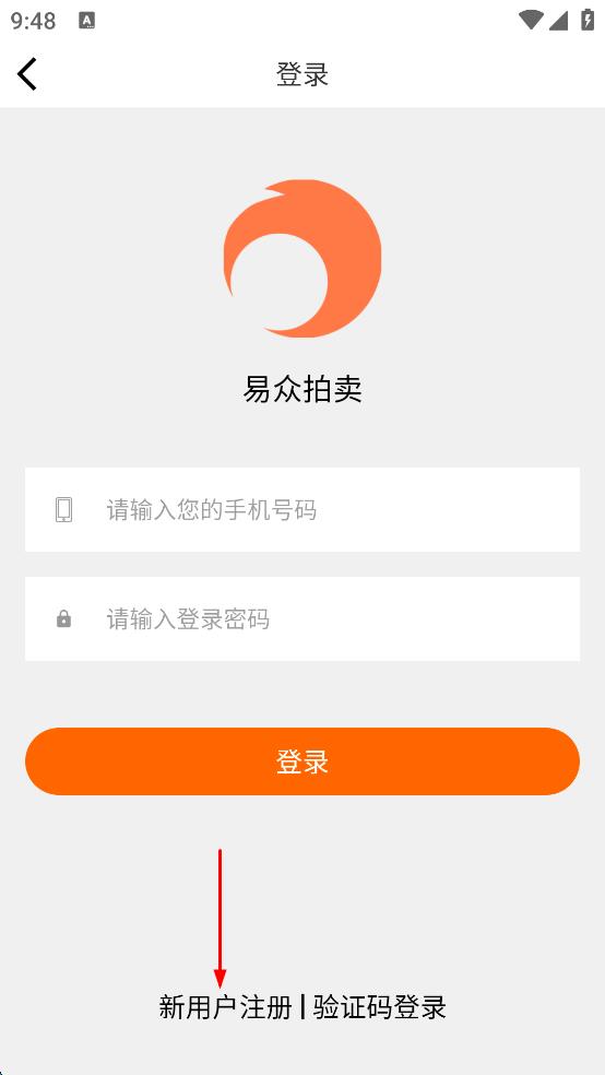 3、在登錄頁面,點擊下方新用戶注冊|驗證碼登錄選項。