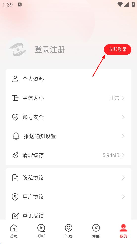 3、在個人頁面上方看到“立即登錄”按鈕,點擊“立即登錄”,進(jìn)入免密登錄界面。