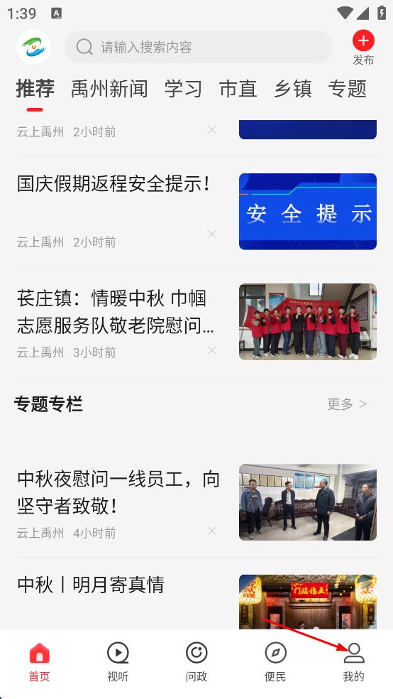 1、打開云上禹州,彈出用戶協(xié)議與隱私政策提示,點擊同意,進(jìn)入軟件首頁。