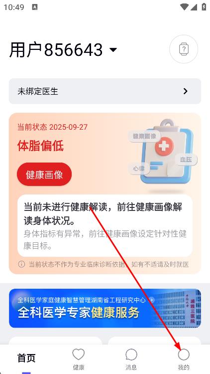 1、打開心泰健康app,點(diǎn)擊底部我的選項(xiàng)。