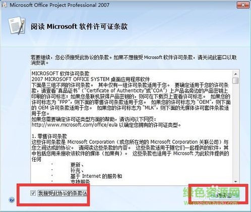 2、輸入Project_2007密鑰,點(diǎn)擊繼續(xù)