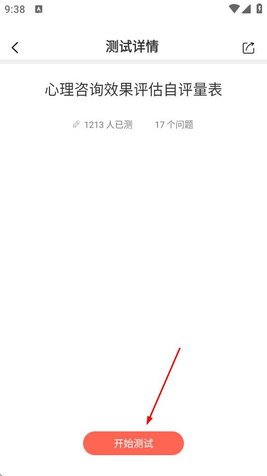 4、進(jìn)入測試詳情頁面,確認(rèn)測試信息后,點(diǎn)擊開始測試,按照題目要求作答,完成心理健康測試。