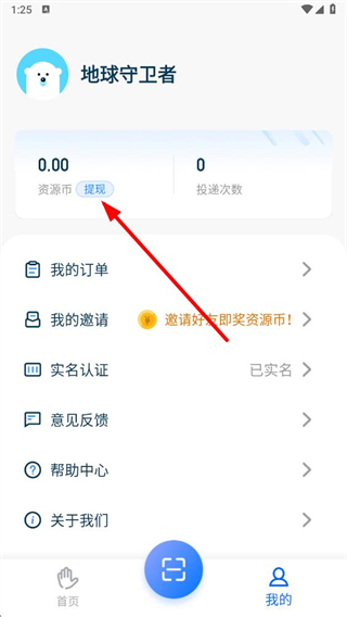 2、在我的頁面,找到資源幣數(shù)額旁的提現(xiàn)按鈕并點擊。
