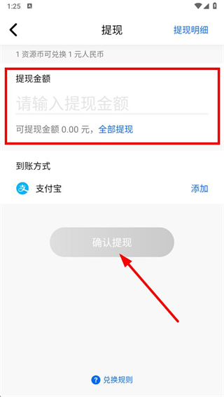 4、在提現(xiàn)頁面,輸入提現(xiàn)金額,到賬方式為支付寶,也可添加其他方式,點擊確認(rèn)提現(xiàn)即可。