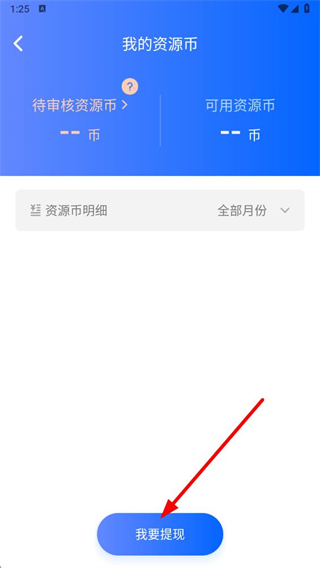 3、進(jìn)入我的資源幣頁面后,點擊下方的我要提現(xiàn)按鈕。