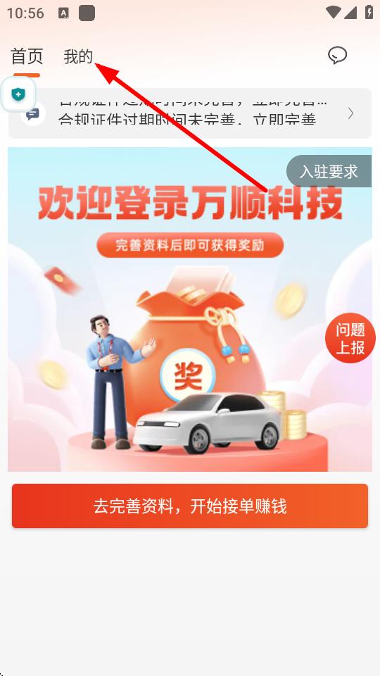 1、打開萬順車主APP,點(diǎn)擊頁(yè)面下方導(dǎo)航欄中的我的選項(xiàng)。
