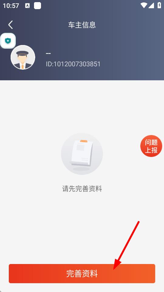 3、進(jìn)入車主信息界面后,點(diǎn)擊下方完善資料按鈕準(zhǔn)備填寫信息。
