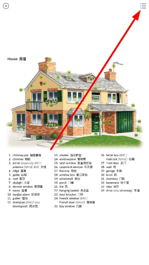 2、進(jìn)入圖解詞匯頁(yè)面后,點(diǎn)擊右上角的菜單按鈕。