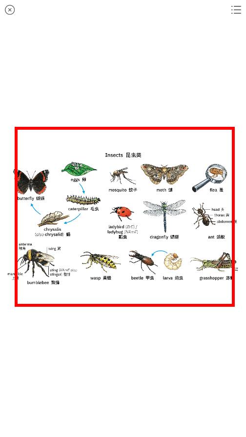 4、進(jìn)入對(duì)應(yīng)詞匯的圖解頁(yè)面,即可查看該詞匯相關(guān)的詳細(xì)圖解內(nèi)容,像昆蟲(chóng)類(lèi)詞匯會(huì)展示各類(lèi)昆蟲(chóng)及相關(guān)部位等圖解。