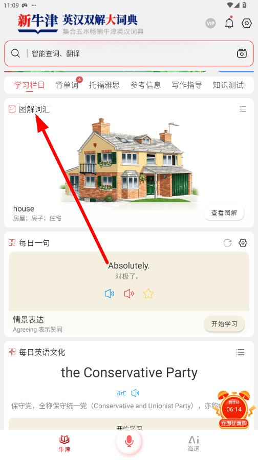 1、打開(kāi)新牛津英漢雙解大詞典應(yīng)用,在首頁(yè)點(diǎn)擊圖解詞匯選項(xiàng)。