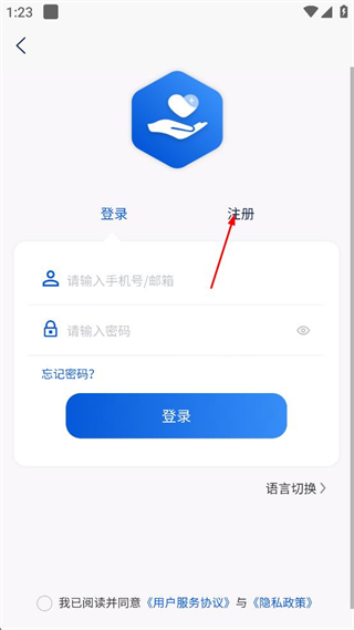 1、點(diǎn)擊“注冊(cè)”選項(xiàng),切換到注冊(cè)界面。