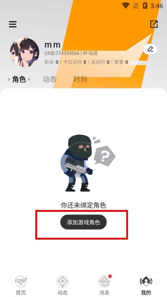2、在個(gè)人界面中若顯示你還未綁定角色,點(diǎn)擊下方添加游戲角色按鈕。