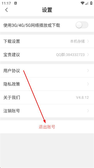 3、進入設置頁面后,找到并點擊退出賬號選項。