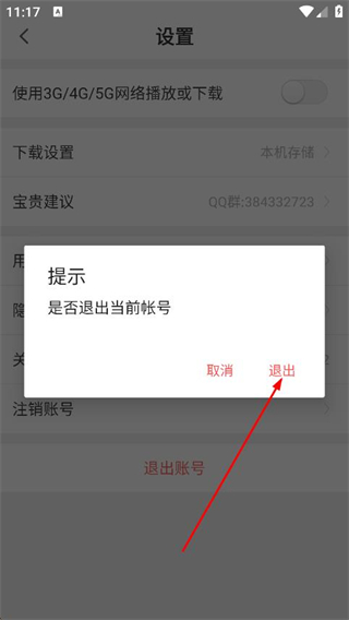 4、在彈出的窗口中,點擊退出,即可退出當前賬號。