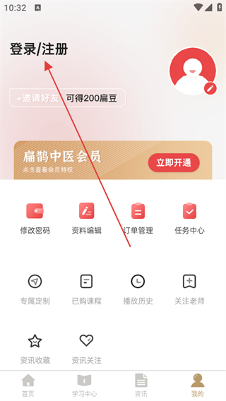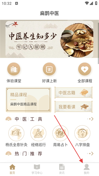 1、打開扁鵲中醫(yī)APP,點(diǎn)擊底部導(dǎo)航欄中的我的選項(xiàng)。