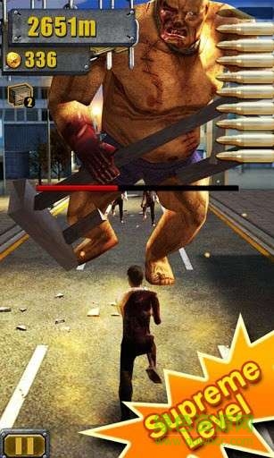 一款摻雜了《神廟跑酷》和《末日跑酷》風(fēng)格的跑酷逃亡游戲,主角是一位精壯的漢子,場景是一個被破壞殆盡的城市,到處都是廢墟、斷墻、堪塌的建筑物、爆炸的油桶和汽車,就連道路都被破壞得慘不忍睹,不僅如此,你的面前隨時會出現(xiàn)一群群變異的喪尸,而你身后緊緊尾隨著一只巨大而丑陋的喪尸,緊張驚險的亡命之旅開始了,不要命地往前跑吧,因為稍有不慎,你就會慘死在喪尸口下。