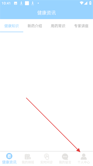 1、打開瞳景醫(yī)生醫(yī)生端APP,在首頁(yè)點(diǎn)擊底部導(dǎo)航欄中的個(gè)人中心選項(xiàng)。