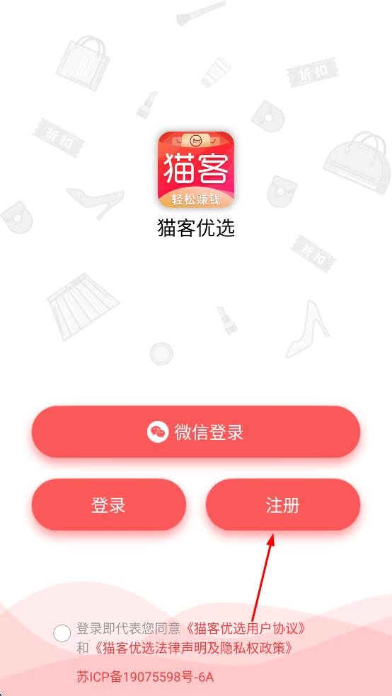 2、在“我的”頁面,點擊“注冊”按鈕,進入注冊流程。