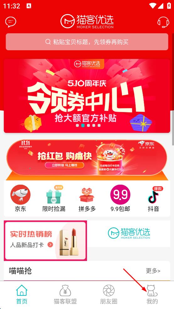 1、打開貓客優(yōu)選APP,進入首頁后,點擊頁面右下角的“我的”按鈕。