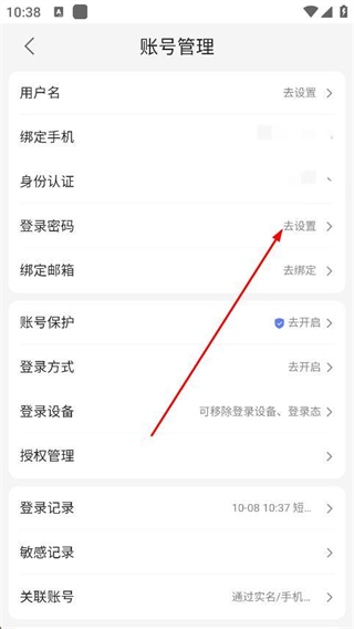 4、找到登錄密碼選項并點擊右側(cè)去設(shè)置,按提示完成密碼設(shè)置。