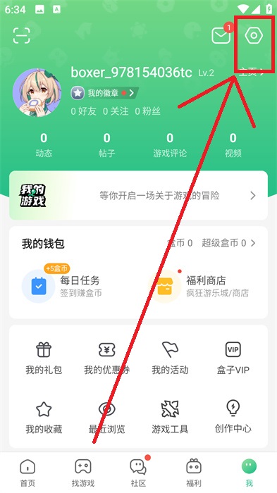 2、在個(gè)人主頁(yè)中需要點(diǎn)擊右上角的【齒輪】進(jìn)入到設(shè)置界面,去進(jìn)行密碼更改;