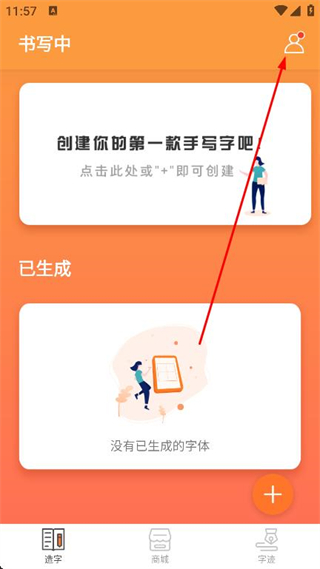 1、打開手跡造字app,點(diǎn)擊右上角的頭像圖標(biāo)。