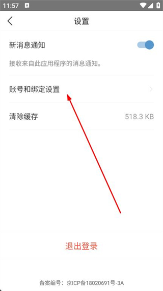 3、在設(shè)置頁面里,點(diǎn)擊賬號和綁定設(shè)置選項(xiàng)。
