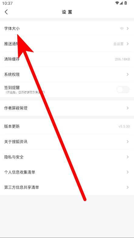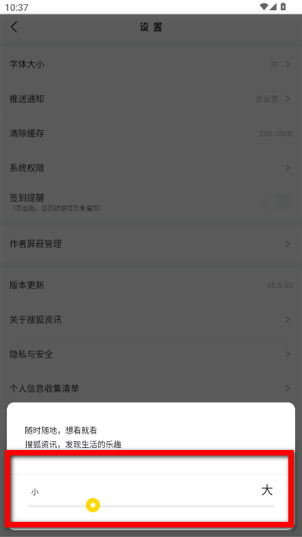 3、在設(shè)置界面,點(diǎn)擊字體大小選項(xiàng),彈出字體大小調(diào)節(jié)窗口。