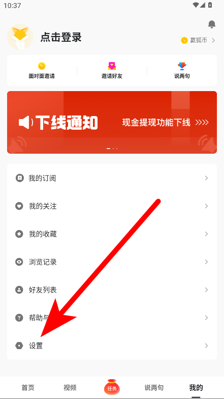 2、在個(gè)人中心頁(yè)面,點(diǎn)擊設(shè)置選項(xiàng),進(jìn)入設(shè)置界面。