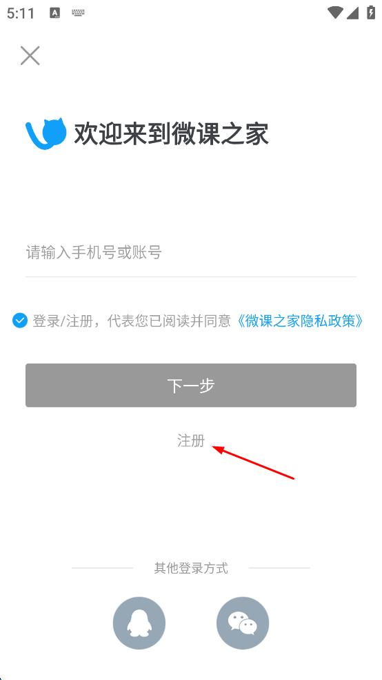 3、在歡迎登錄頁(yè)面點(diǎn)擊“注冊(cè)”,進(jìn)入注冊(cè)微課之家頁(yè)面。