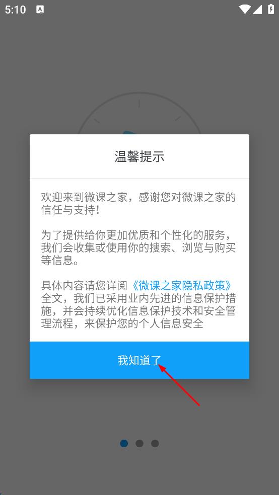 1、打開微課之家,彈出溫馨提示,點(diǎn)擊“我知道了”,進(jìn)入軟件相關(guān)界面。