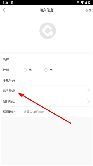 3、在用戶信息頁面里,找到并點擊賬號管理選項。