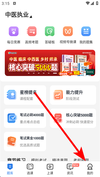 1、在星題庫的首頁,需要點擊底部我的按鈕,進入個人頁面。