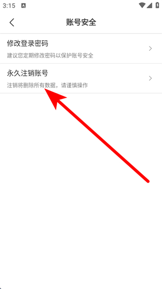 3、在賬號安全頁面,點擊永久注銷賬號,進入注銷說明頁面。