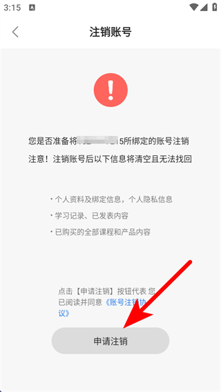4、在注銷說明頁面,點擊申請注銷,完成賬號注銷的操作。